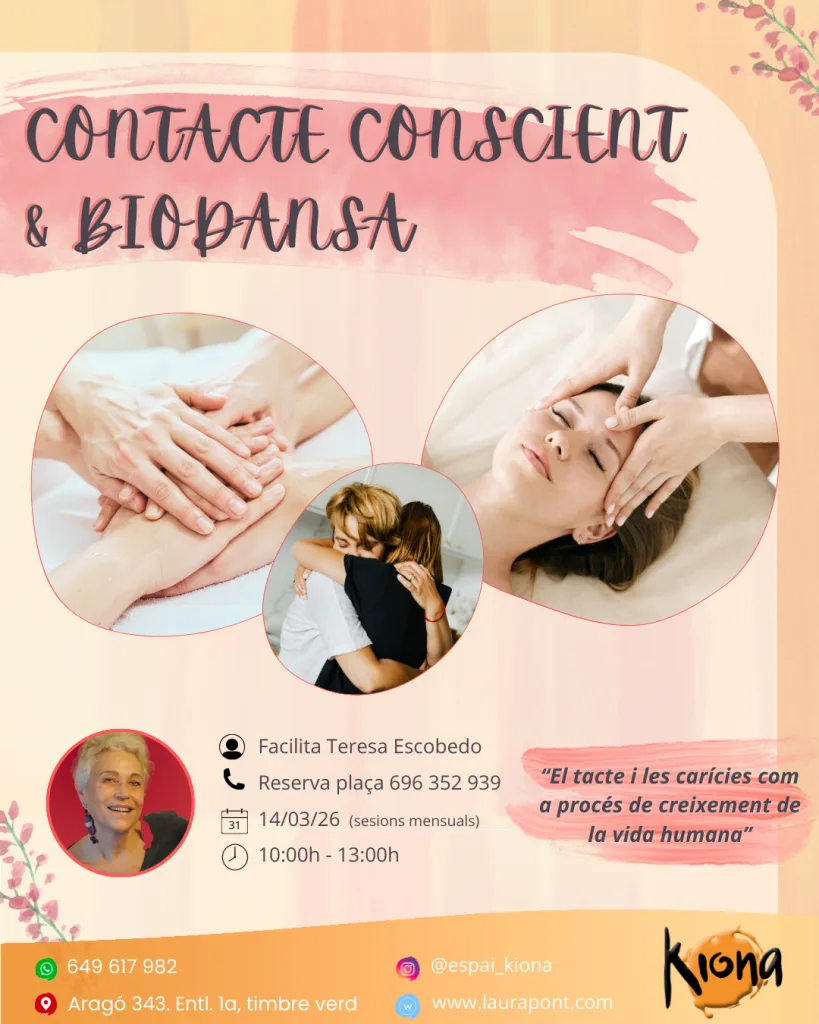 Aquest projecte te com objectiu millorar les relacions amb el tacte i el contacte que nodreix. Desenvolupant de forma sencilla i vivenciada, la qualitat del contacte conscient. Creant una experiencia corporal, de cura compartida, acompanyada de biodansa i massatge.