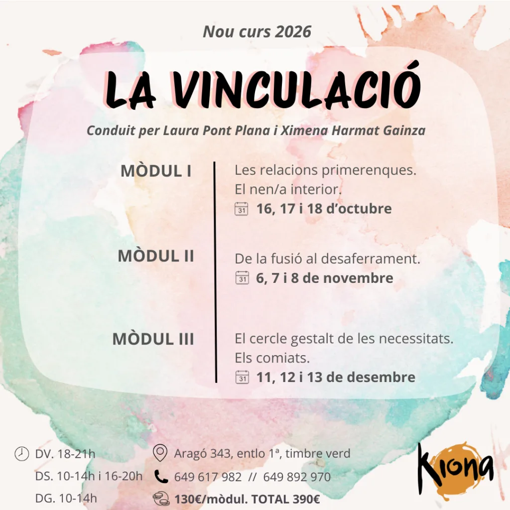 - MÒDUL I: Les relacions primerenques. El nen/la nena interior. (16, 17 i 18 d’octubre 2026)